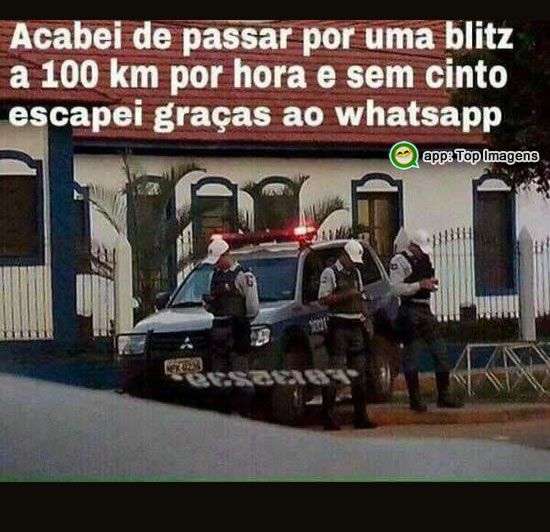 Acabei de passar por uma blitz a 100 km por hora e sem cinto escapei graças ao whatsapp.