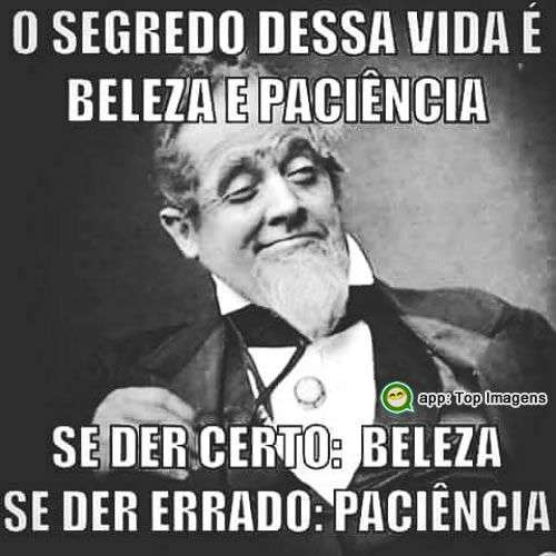 O segredo dessa vida é beleza e paciência Se der certo: beleza Se der errado: paciência