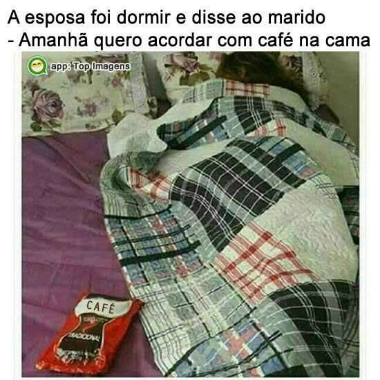 A esposa foi dormir e disse ao marido: - Amanhã quero acordar com café na cama.