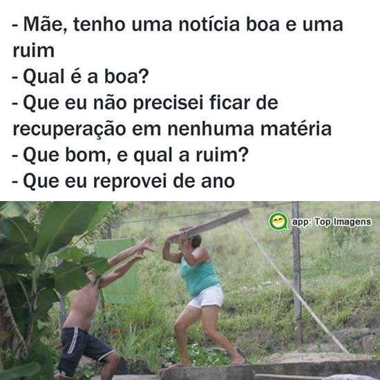 - Mãe, tenho uma notícia boa e uma ruim.
