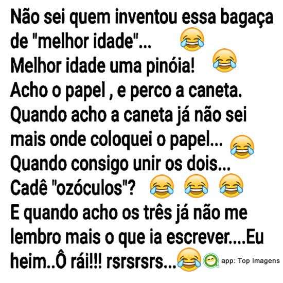 Não sei quem inventou essa bagaça de "melhor idade"... Melhor idade uma pinoia!
