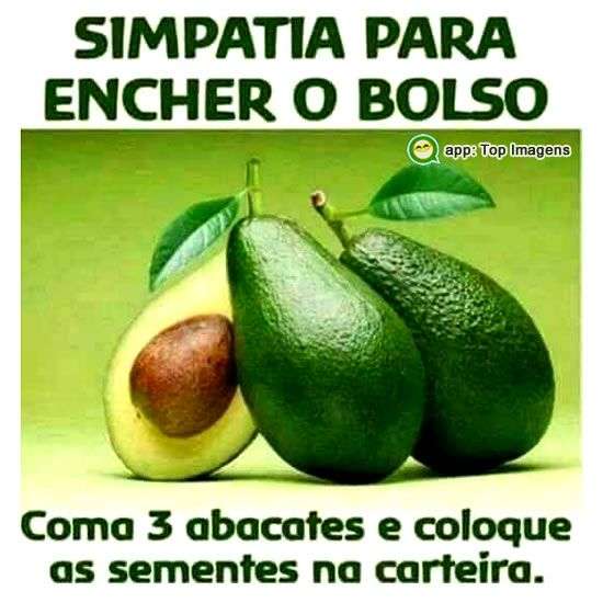 Simpatia para encher o bolso. Coma 3 abacates e coloque as sementes na carteira.