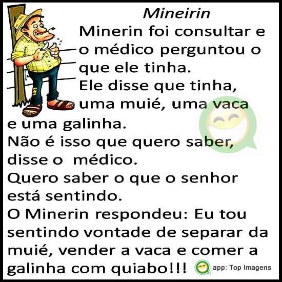 O minerin respondeu: Eu tou sentindo vontade de separar da muié, vender a vaca e comer a galinha com quiabo!!!