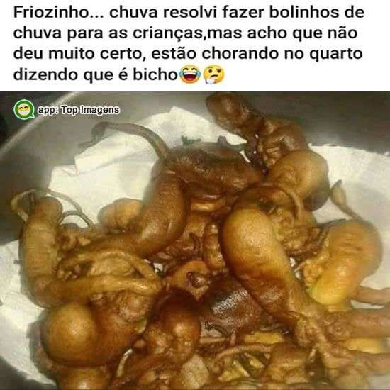 Friozinho... chuva resolvi fazer bolinhos de chuva para as crianças, mas acho que não deu muito certo, estão chorando no quarto dizendo que é bicho.