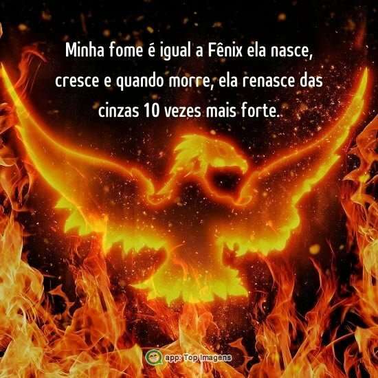 Minha fome é igual a Fênix ela nasce, cresce e quando morre, ela renasce da cinzas 10 vezes mais forte.