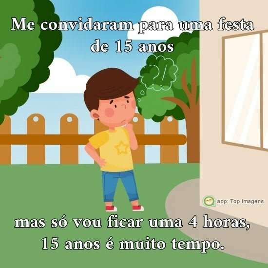 Me convidaram para uma festa de 15 anos, mas só vou ficar uma 4 horas, 15 anos é muito tempo.