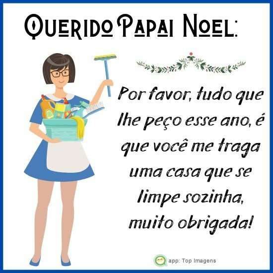 Por favor, tudo que lhe peço esse ano, é que você me traga uma casa que se limpe sozinha, muito obrigada!