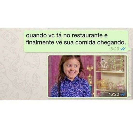 Quando vc tá no restaurante e finalmente vê sua comida chegando.