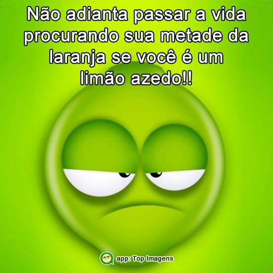 Não adianta passar a vida procurando sua metade da laranja se você um limão azedo!