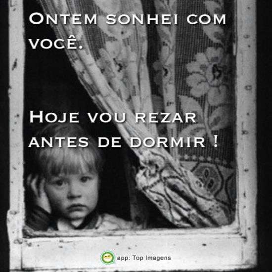 Ontem sonhei com você. Hoje vou rezar antes do dormir!