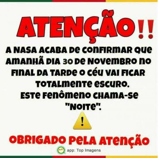 A Nasa acaba de confirmar que amanhã dia 30 de Novembro no final da tarde o céu vai ficar totalmente escuro.