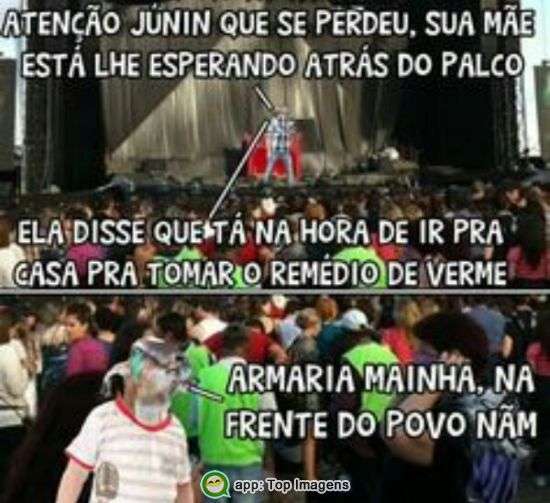 Atenção Junin que se perdeu, sua mãe esta lhe esperando atrás do palco