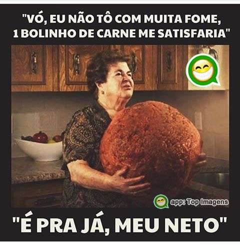 - Vó, eu não tô com muita fome, 1 bolinho de carne me satisfaria. - É pra já, meu neto.