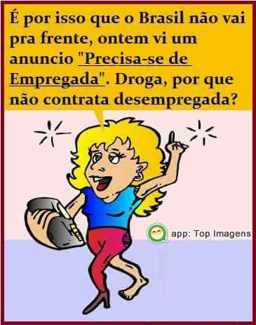 É por isso que o Brasil não vai pra frente, ontem vi um anuncio "Precisa-se de empregada?". Droga, por que não contrata desempregada?