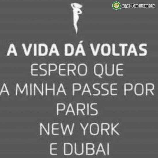A vida dá voltas espero que a minha passe por Paris, New York e Dubai.