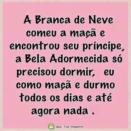 A Branca de Neve comeu a maça e encontrou seu príncipe, a Bela Adormecida só precisou dormir, eu como maçã e durmo todos os dias e até agora nada.
