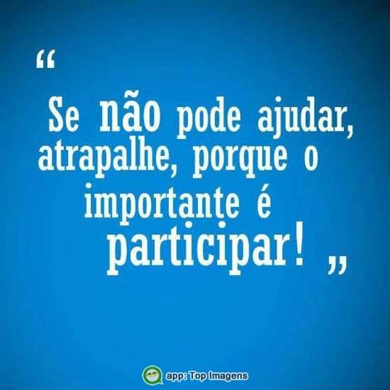 Se não pode ajudar, atrapalhe, porque o importante é participar!