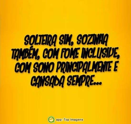 Solteira sim, sozinha também, com fome inclusive, com sono principalmente e cansada sempre...