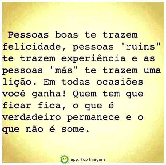 Pessoas boas te trazem felicidade, pessoas "ruins" te trazem experiência e as pessoas "más" te trazem uma lição.