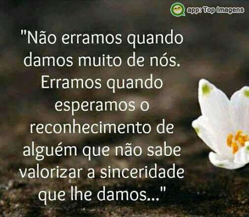 Não erramos quando damos muito de nós. Erramos quando esperamos o reconhecimento de alguém que não sabe valorizar a sinceridade que lhe damos...