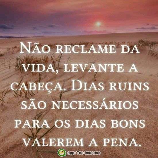 Não reclame da vida, levante a cabeça. Dias ruins são necessários para os dias bons valerem a pena.
