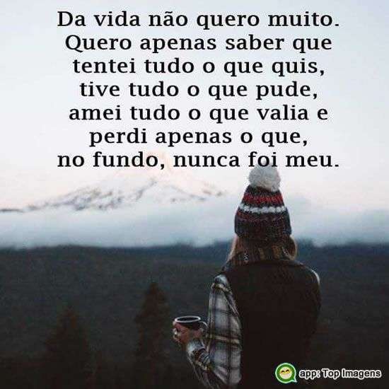 Quero apenas saber que tentei tudo o que quis, tive tudo o que pude, amei tudo o que valia e perdi apenas o que, no fundo, nunca foi meu.