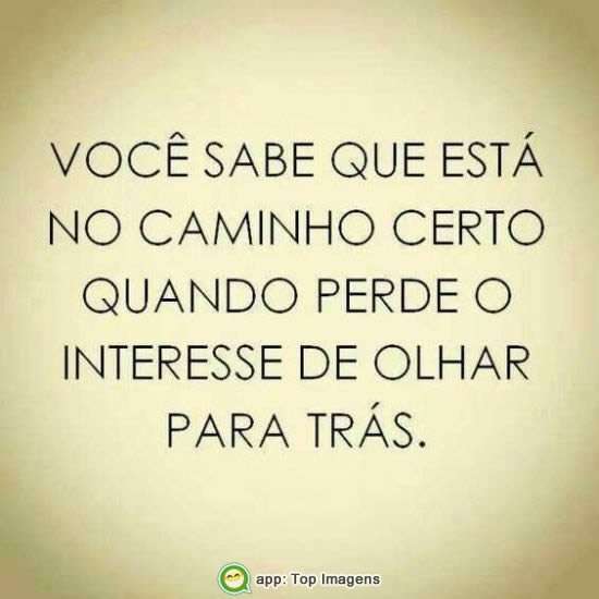Você sabe que está no caminho certo quando perde o interesse de olhar ara trás.