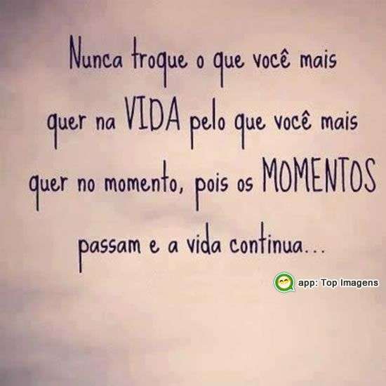 Nunca troque o que você mais quer na vida pelo que você mais quer no mundo, pois os momentos passam, e a vida continua...