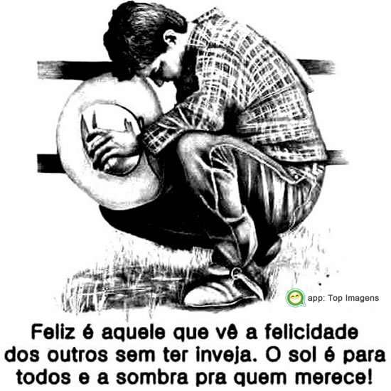 Feliz é aquele que vê a felicidade dos outros sem ter inveja. O sol é para todos e a sombra pra quem merece!