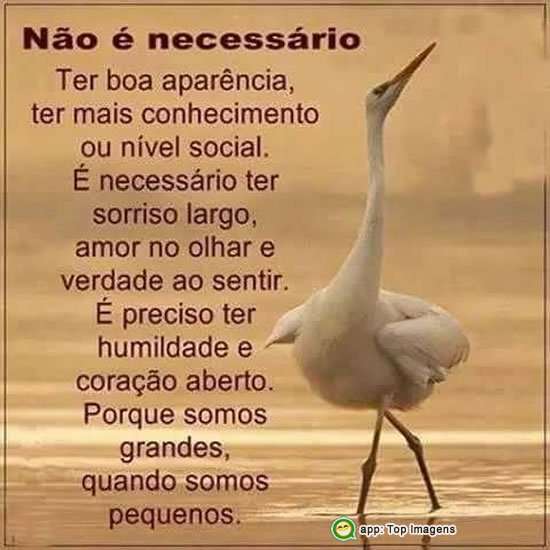 É necessário ter sorriso largo, amor no olhar verdade ao sentir.