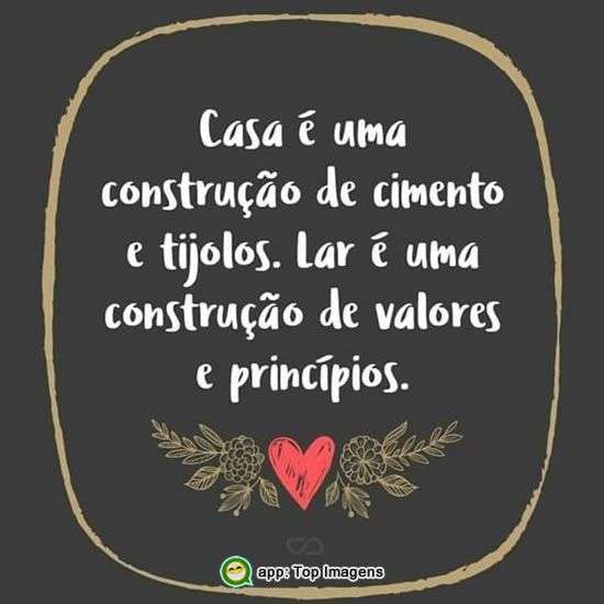Casa é uma construção de cimento e tijolos. Lar é uma construção de valores e princípios.