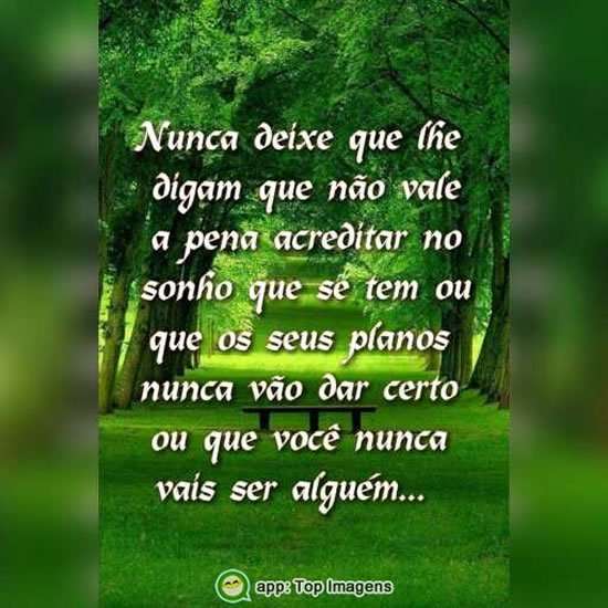 Nunca deixe que lhe digam que não vale a pena acreditar no sonhos que se tem ou que os seus planos nunca vão dar certo ou que você nunca vai ser alguém...