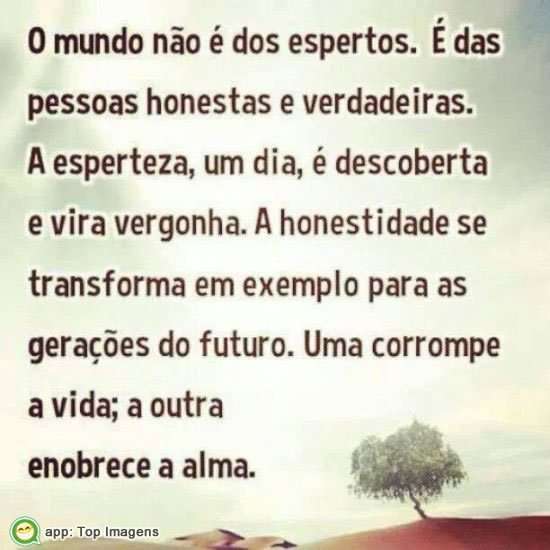 O mundo não é dos espertos. É das pessoas honestas e verdadeiras.