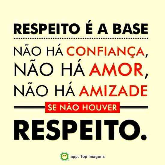 Respeito é a base. Não há confiança, não há amor, Não há amizade se não houver respeito.