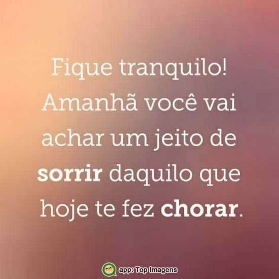 Fique tranquilo! Amanhã você vai achar um jeito de sorrir daquilo que hoje te fez chorar.