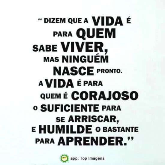 Dizem que a vida é para quem sabe viver, mas ninguém nasce pronto. A vida é para quem é corajoso o suficiente para se arriscar, e humilde o bastante para aprender.