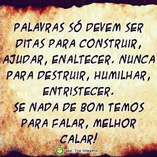 Palavras só devem ser ditas para construir, ajudar, enaltecer, nunca para destruir, humilhar, entristecer.