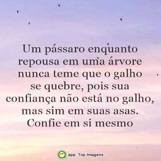 Um pássaro enquanto repousa em uma árvore nunca teme que o galho se quebre, pois sua confiança não está no galho, mas sim em suas asas.