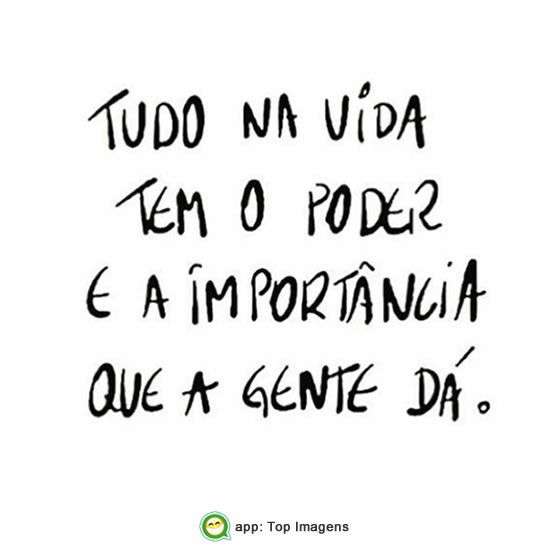 Tudo na vida tem o poder e a importância que a gente dá.