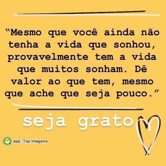 Mesmo que você ainda não tenha a vida que sonhou, provavelmente tem a vida que muitos sonham. Dê valor ao que tem, mesmo que ache que seja pouco.