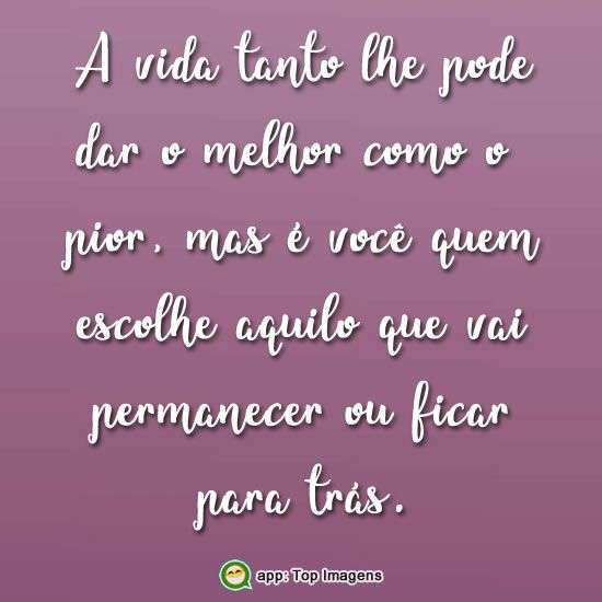A vida tanto lhe pode dar o melhor como o pior, mas é você quem escolhe aquilo que vai permanecer ou ficar para trás.