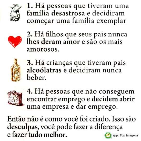 Então não é como você foi criado. Isso são desculpas, você pode fazer a diferença e fazer tudo melhor.