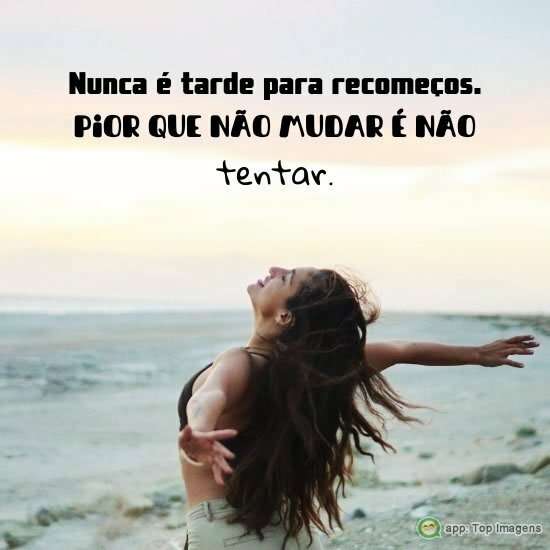 Nunca é tarde para recomeços. Pior que não mudar é não tentar.