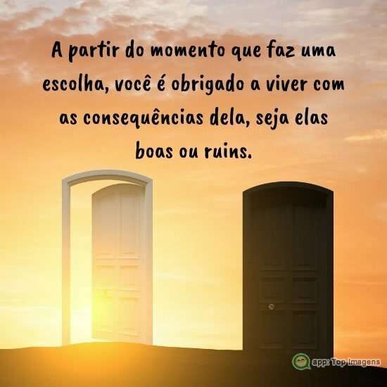 A partir do momento que faz uma escolha, você é obrigado a viver com as consequências dela, seja elas boas ou ruins.
