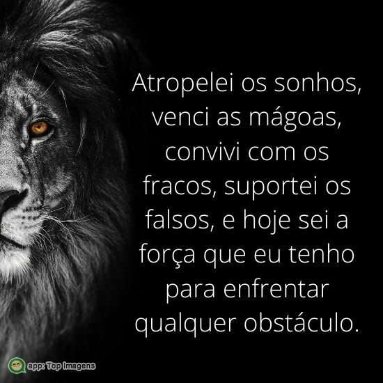 Atropelei os sonhos, venci as mágoas, convivi com os fracos, suportei os falsos, e hoje sei a força que eu tenho para enfrentar qualquer obstáculo.