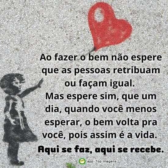 Mas espere sim, que um dia, quando você menos esperar, o bem volta pra você, pois assim é a vida.
