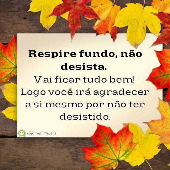 Respire fundo, não desista. Vai ficar tudo bem! Logo você irá agradecer a si mesmo por não ter desistido.