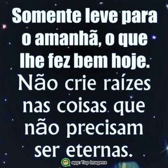 Somente leve para o manhã, o que lhe faz bem hoje. Não crie raízes nas coisas que não precisam ser eternas.