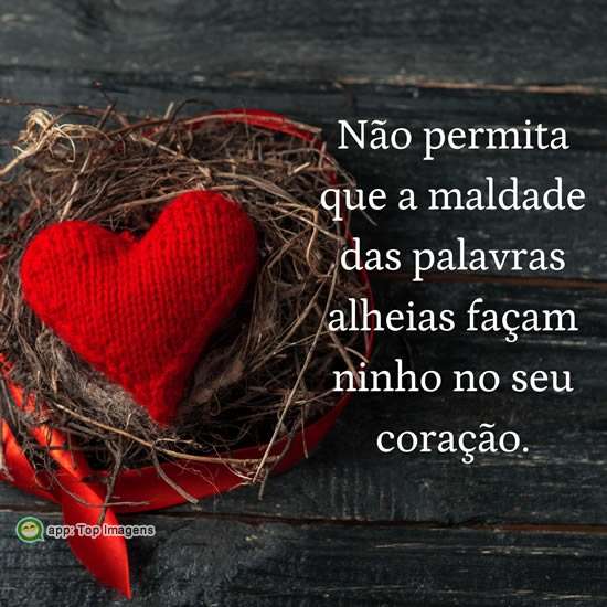 Não permita que a maldade das palavras alheias façam ninho no seu coração.