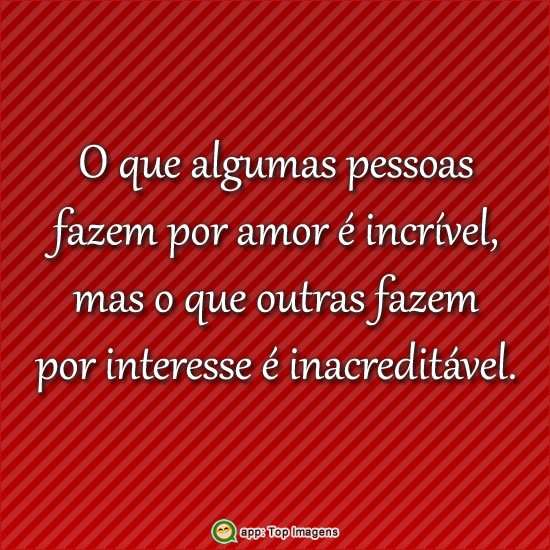 O que algumas pessoas fazem por amor é incrível, mas o que outras fazem por interesse é inacreditável.